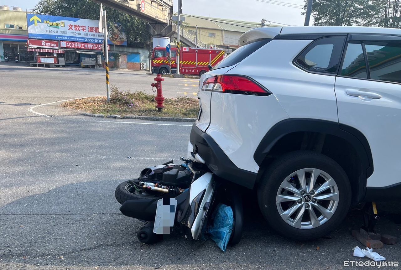 呂男當時被擦撞後向前噴飛至路邊停放的轎車下,一度受困。消防人員到場利用千斤頂將人拉出,所幸他意識清楚,肢體多處擦挫傷。緊急送走。