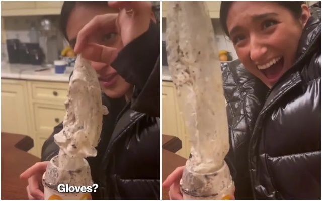 影片中,凱莉一邊失控大笑,一邊從杯底拉出沾有Oreo碎片的異物,她與友人一開始懷疑是手套,後來認為更像是一個塑膠袋。字幕寫道,「我們完全不知道,她剛剛在冰炫風杯底發現的東西是什麼,我要瘋了。」