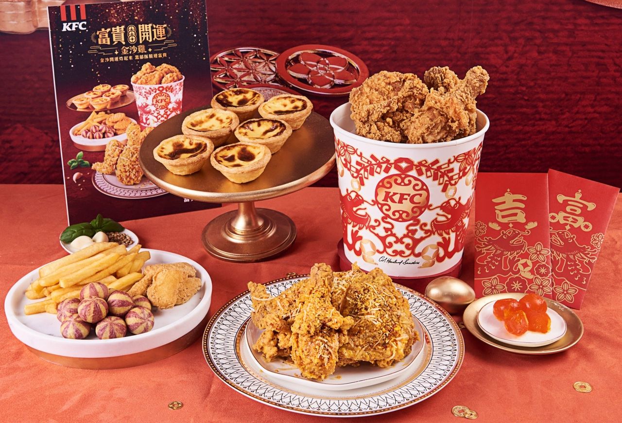 肯德基「富貴開運金沙雞」龍年限時回歸,用酥脆多汁的咔啦脆雞,淋上富貴金沙醬,濃郁的金沙醬使用特選紅土鹹蛋黃,搭配蒜頭、羅勒、芫荽籽等辛香料爆炒,讓每一口都吃得到鹹香濃郁金沙,微沙又濃郁的口感,再灑上帕瑪森乾酪絲,打造奢華獨特的滋味,吃一口就欲罷不能。同步加碼「金沙薯條」,獨特的鹹香富貴金沙醬,淋上香酥脆薯,濃郁超涮嘴,象徵好運不間斷。