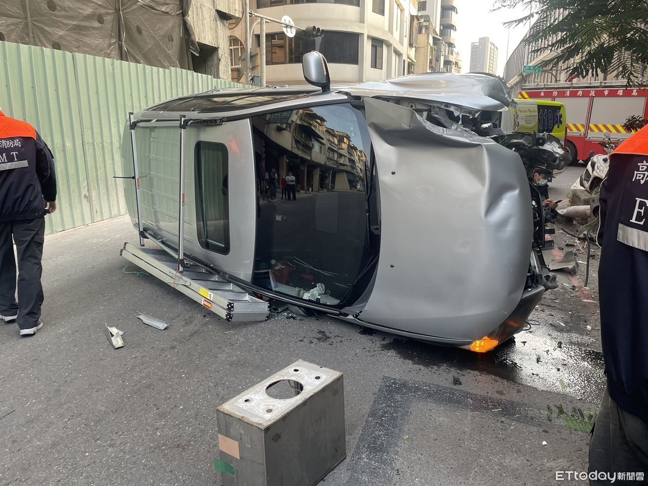 事故發生在下午16時24分,郭男開車行經三民區義華路287巷與褒揚街口,疑未注意車前狀況,不慎自撞分電桿致車輛側翻。