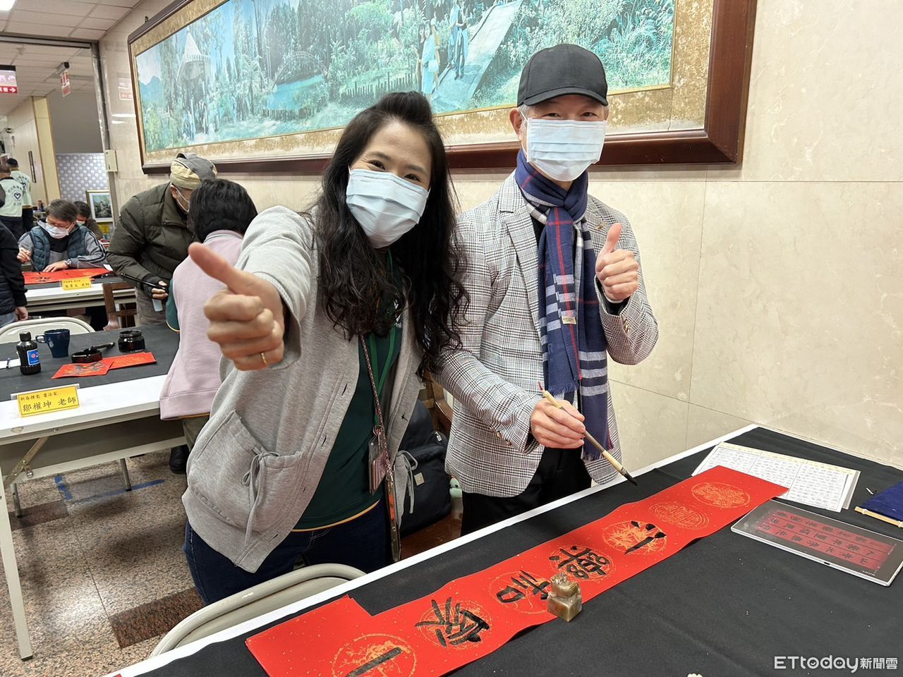 ▲竹秀醫院邀請社區書法老師揮毫送春聯、表揚量血壓冠軍爺奶、指導健康年菜作法。(圖/竹山秀傳醫院提供,下同)