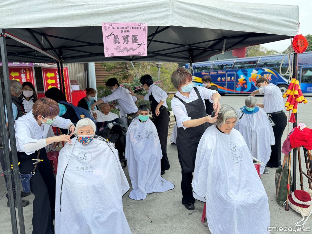 ▲ 嘉基把年貨大街搬進餐廳 為獨老辦圍爐活動,現場提供義剪服務 。(圖/嘉義基督教醫院提供)