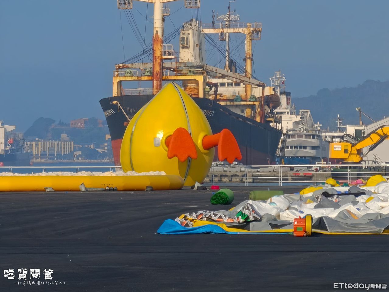 黃色小鴨又來台了!荷蘭藝術家霍夫曼(Florentijn Hofman)今年為台灣帶來2個黃色小鴨,象徵「雙倍幸福」,吸引許多民眾到高雄一睹可愛的黃色小鴨。不過,部落客「一對爸媽兩個娃的吃貨人生」日前賞鴨時,卻意外撞見「跌倒的鴨子」,可愛畫面逗樂不少人。不過實際上,「跌倒」的小鴨不是「入水」的黃色小鴨,而是裝置藝術。