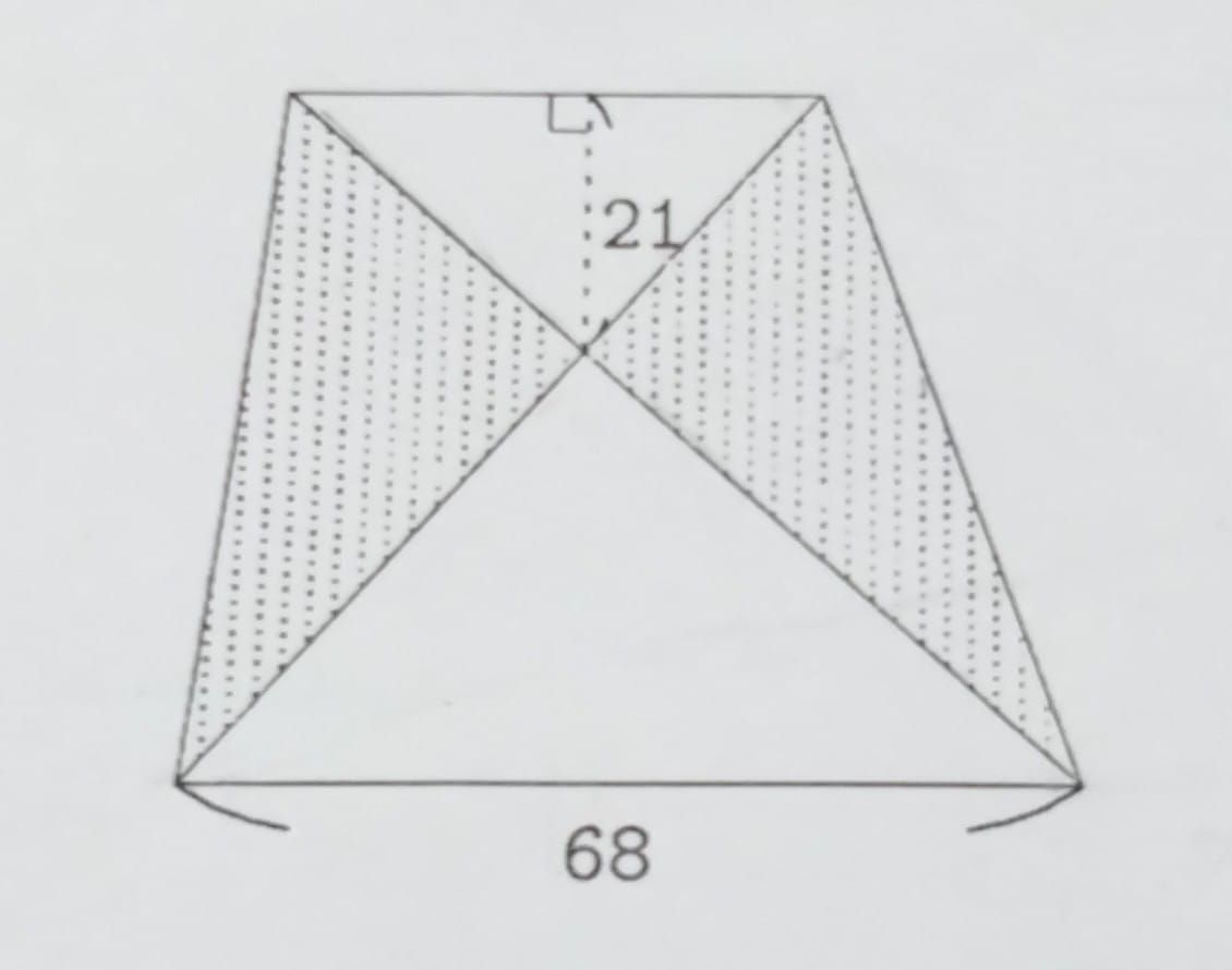 ▲小學數學題目:求梯形中對角線圍成的塗色面積。(圖/翻攝「臭寶爸 - 兒科陳敬倫醫師 」臉書)
