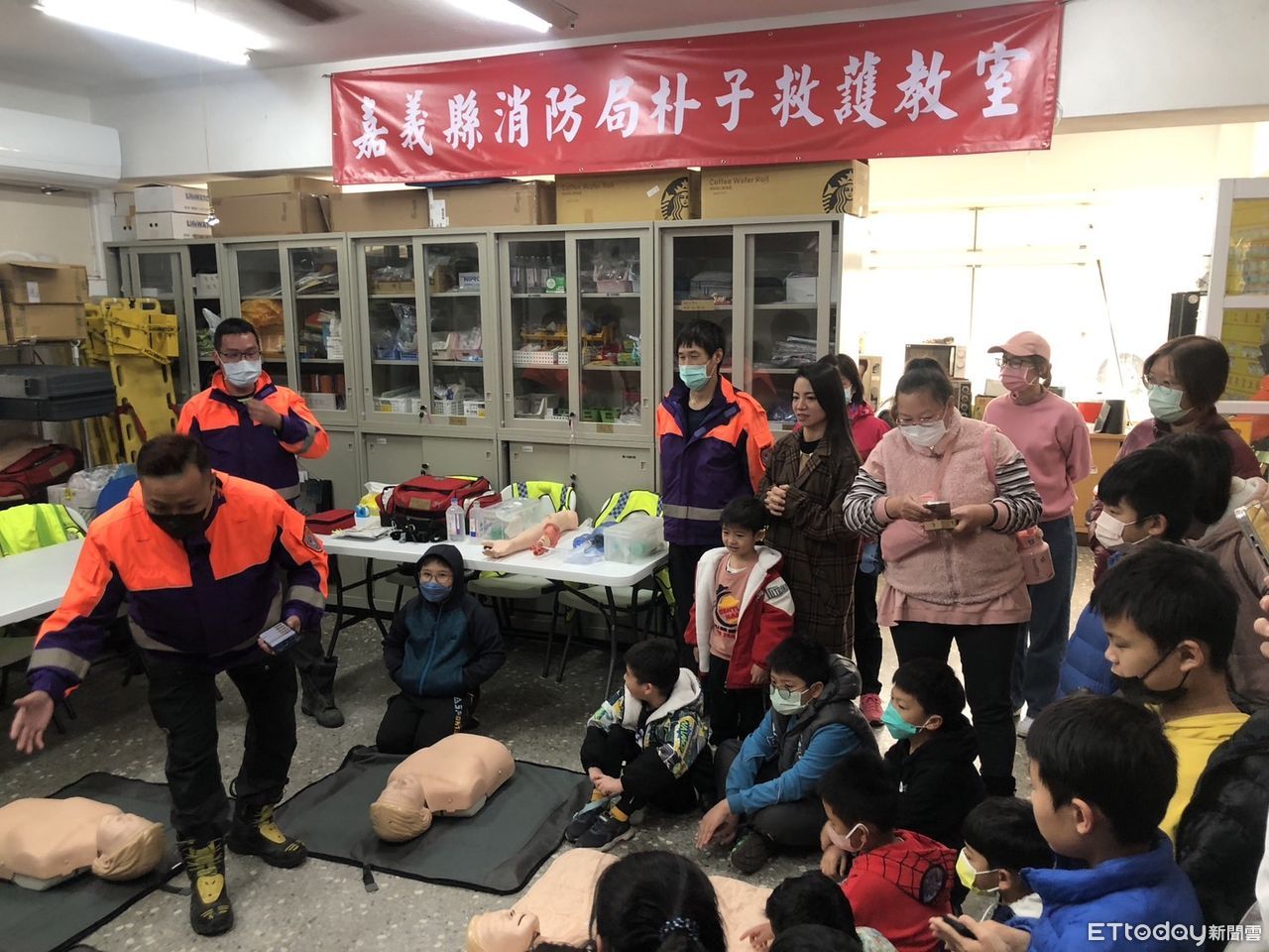 活動中參與活動的學童、家長約50名,本次宣導活更是動員消防員17名,宣導人員6名、救護志工4名,還有義消3名。本次結合「朴子救護教室」進行急救宣導,「朴子救護教室」是局長今年首重計畫之一,目的除了讓消防員可以有學習救護的教室,更是讓民眾有機會在救護教室學習急救技巧,透過高級救護技術員的帶動與講解,讓整個急救宣導活動互動、活潑起來,活動結束後,還能獲得一份精美禮品。