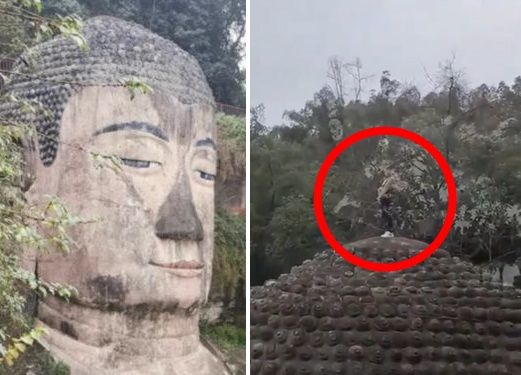 四川的「樂山大佛」嘉州凌雲寺大彌勒石像,高度達70公尺,是全球現存最大尊的石刻坐佛,不過近日卻傳出,一名遊客爬上大佛頭頂後,直接「就地解放」,脫序行為全被旁人拍下,在網路引發瘋傳。對此,景區工作人員表示,當時巡查人員未發現該男子的行為,目前警方已介入調查。