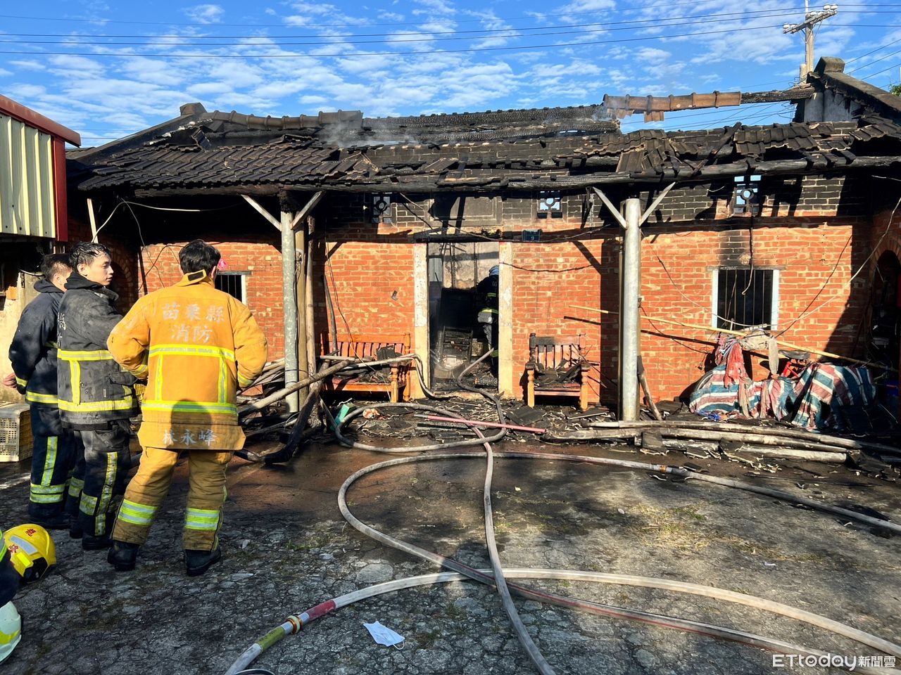 ▲苗栗後龍高鐵特區附近一處民宅1日上午發生火警,90多歲的阿嬤和外籍看戶及時逃出火場,沒有人員傷亡。(圖/記者蔡文淵翻攝,下同)