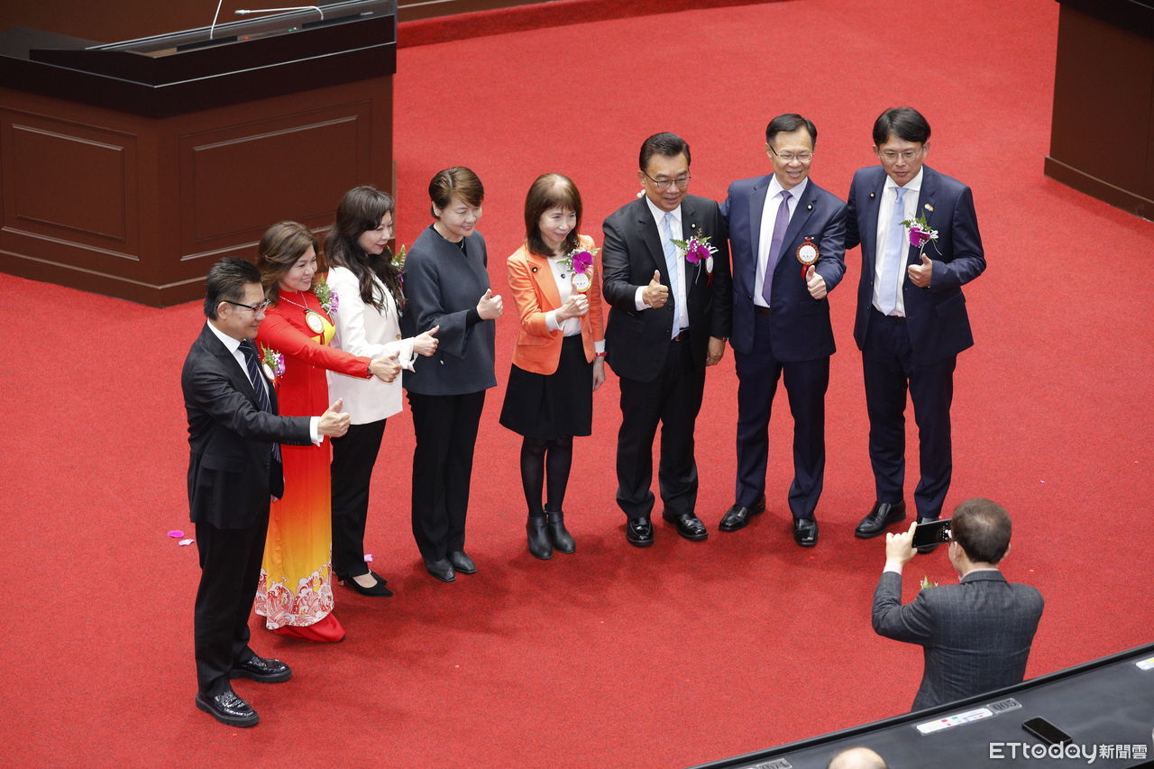 ▲第十一屆新國會今(1)開議,民眾黨八名新科委員拍團體照。(圖/記者湯興漢攝)
