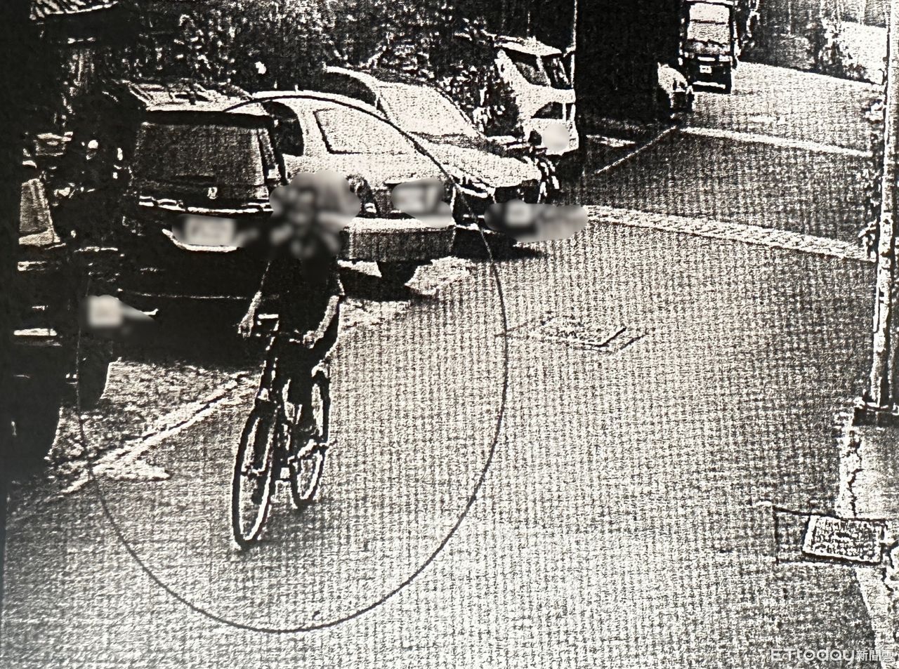 ▲監視器拍下竊賊騎腳踏車 。(圖/記者陳以昇翻攝,下同)