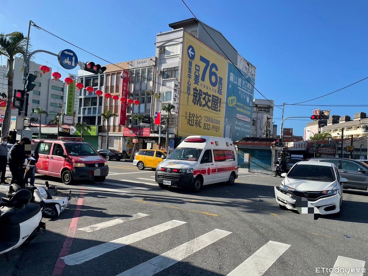▲花蓮71歲老翁騎車闖紅燈,遭直行轎車撞上噴飛 。(圖/記者王兆麟翻攝,下同)