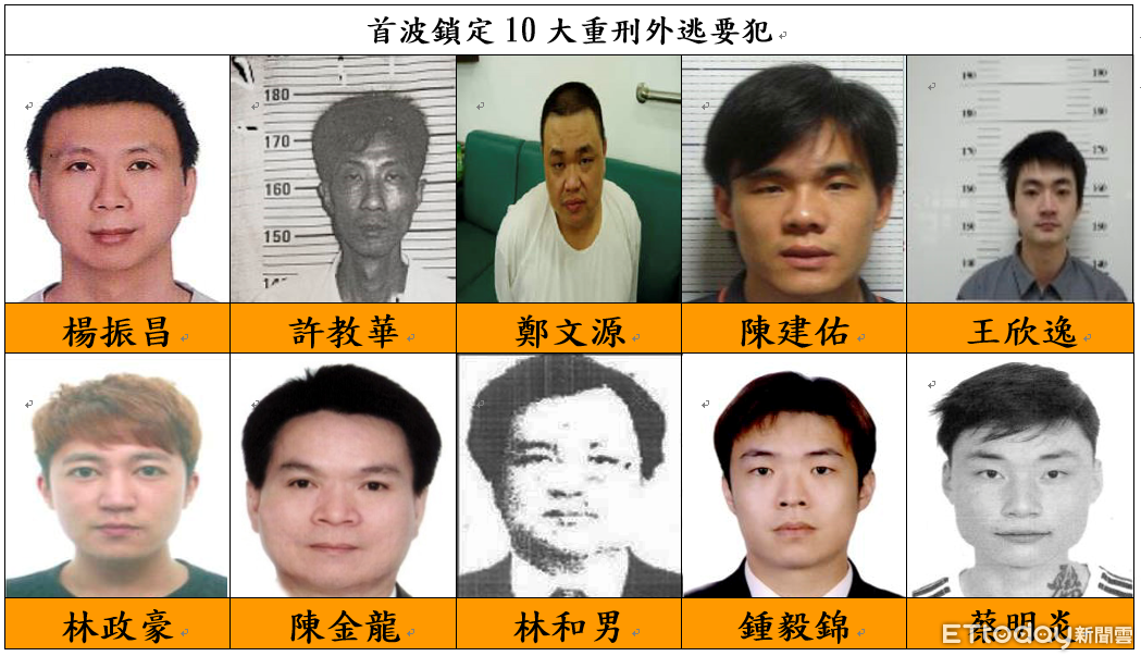一、依該原則,首波10大重刑外逃要犯名單出爐