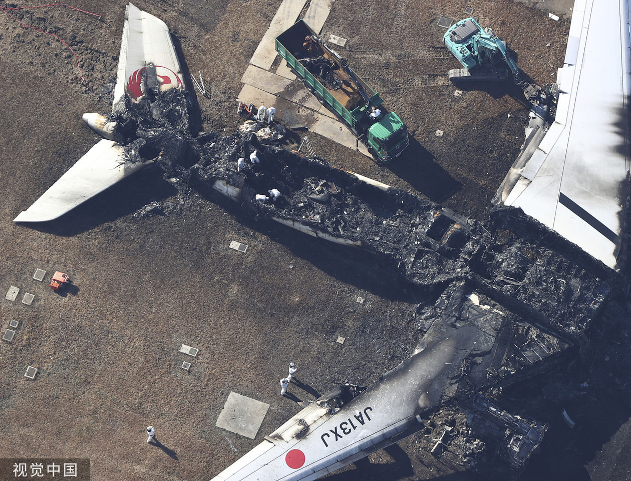 ▲日航A350飛機日前遭遇飛安事故後被燒毀。(圖/CFP)