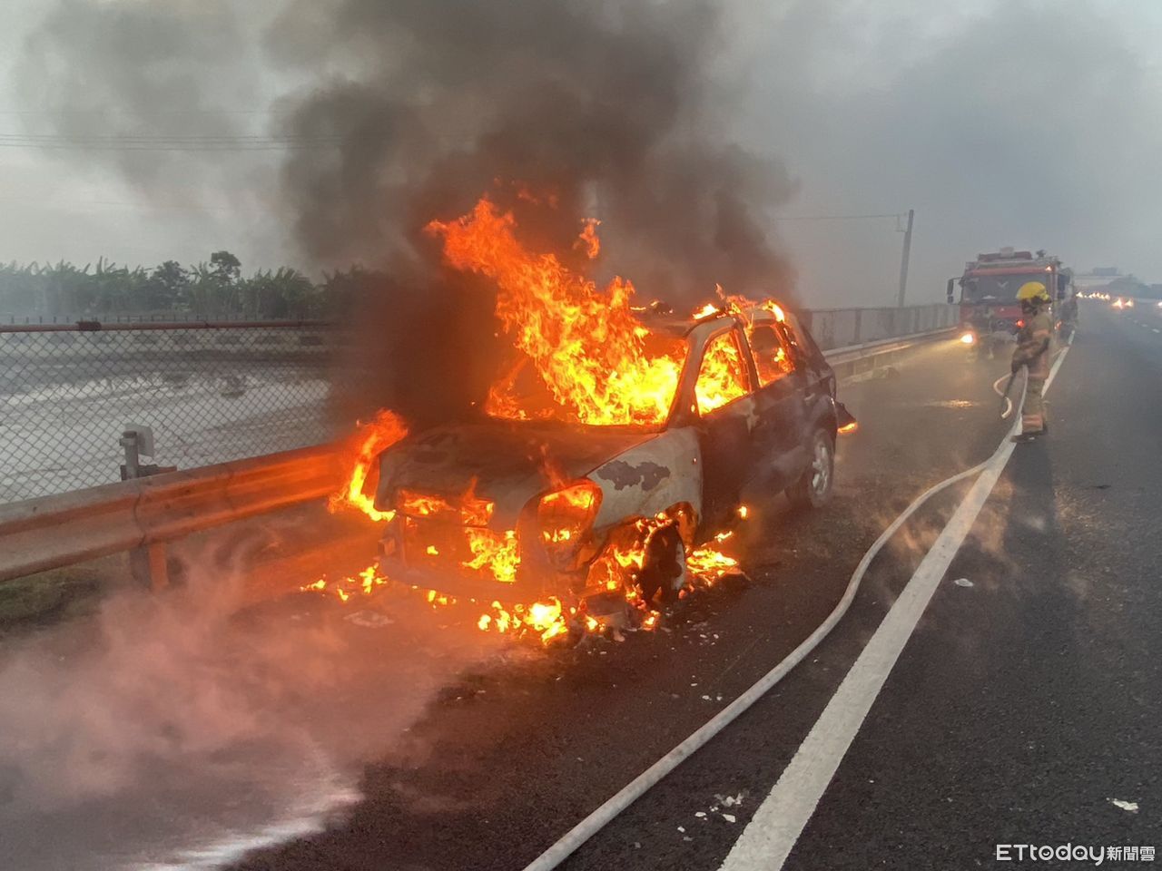 台南新營區國道一號北上方向今(5日)早發生火燒車意外,消防隊出動4車11人前往灌救,14分鐘迅速完成滅火,所幸無人傷亡。