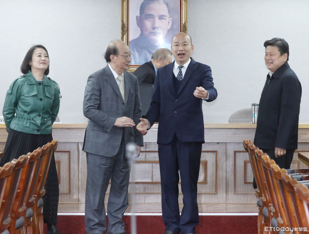 ▲韓國瑜(右二)今天在會議開始前,先與朝野黨鞭握手致意。(圖/記者屠惠剛攝)