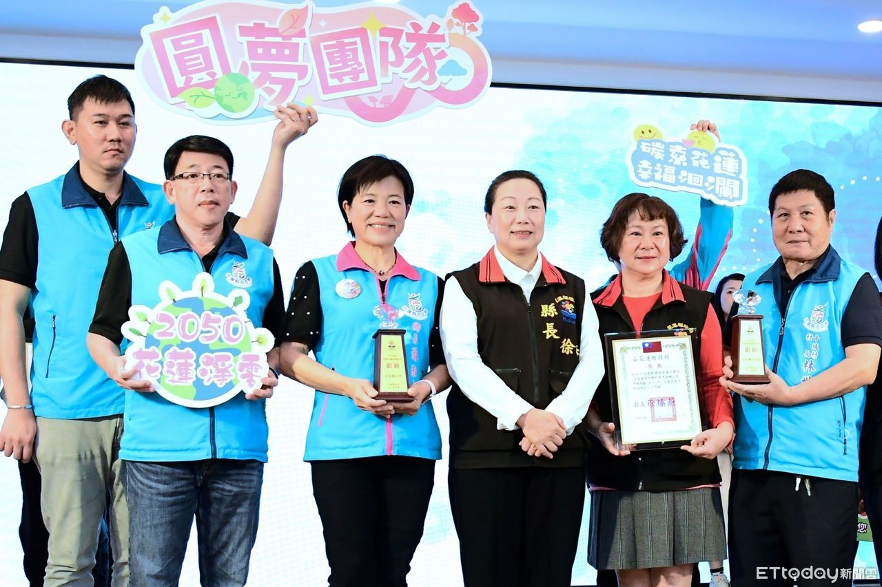 ▲▼花蓮吉安鄉勇奪低碳永續家園全國好成績,花蓮縣長日前升旗典禮中公開表揚吉安鄉長(左三)及公所團隊。(圖/吉安鄉公所提供,下同)