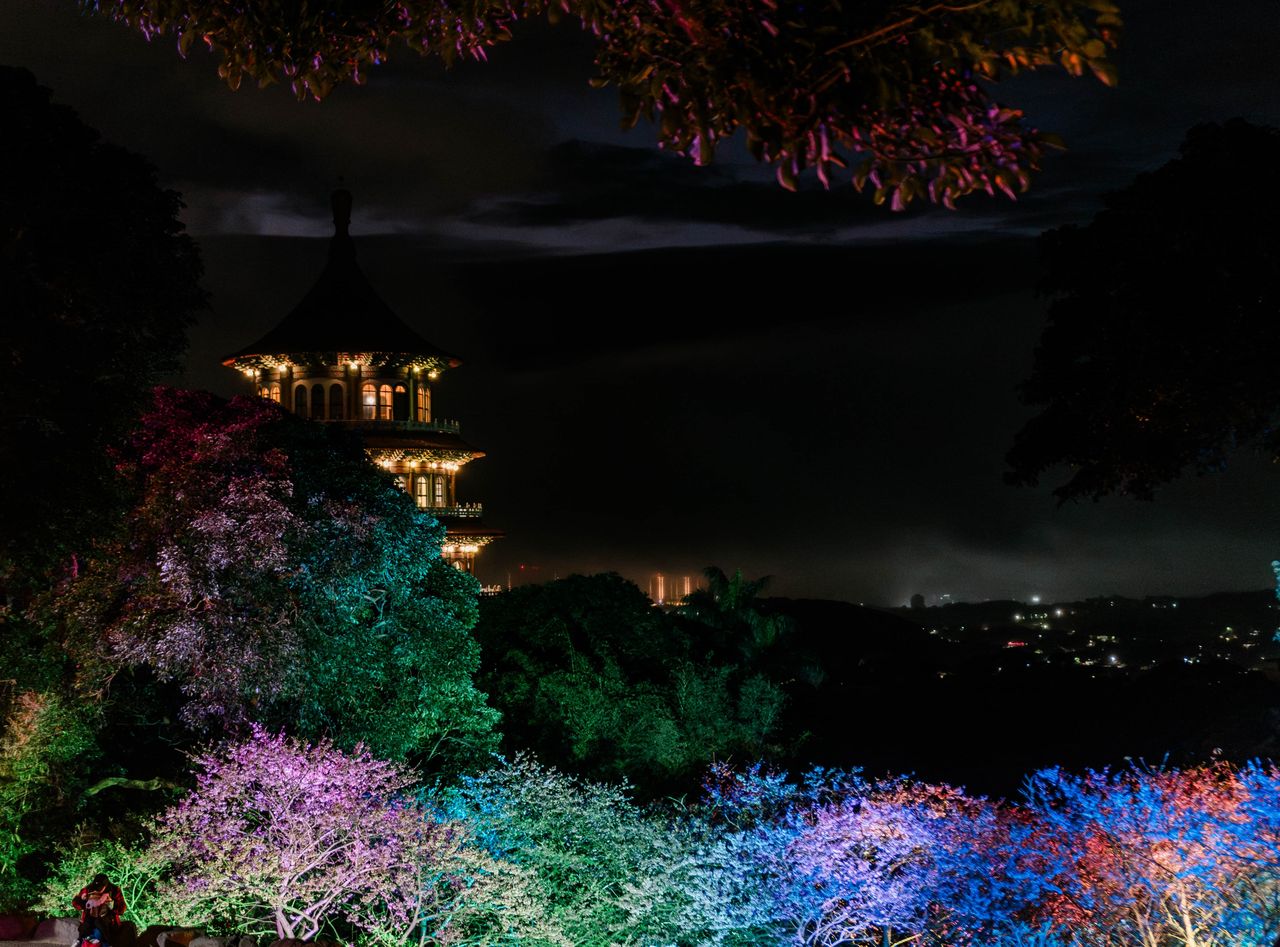▲新北日夜賞櫻超浪漫,淡水天元宮夜櫻今點燈。(圖/新北市景觀處提供,下同)