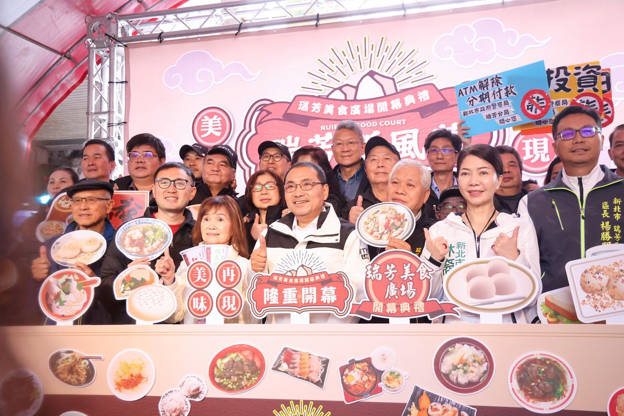 侯友宜表示,新北市近年積極改建及改造市場,目前計改建完成9座公有市場,改造完成12座公有市場。瑞芳美食廣場今日完成改造重新開幕,它正對面就是瑞芳火車站,是到九份、金瓜石觀光旅遊必經之地,尤其國際觀光客常常來這裡吃美食,侯友宜大讚「這裡的胡椒餅、肉羹等美食,實在太好吃了!」瑞芳美食廣場春節期間不打烊,歡迎民眾走春遊玩來這裡享用當地美食。