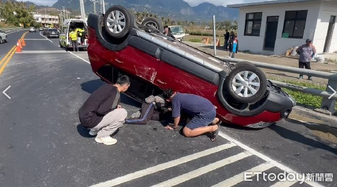 花東海岸公路台東富山段,7日發生一起翻車意外,一旁正好有施工人員,緊急合力將一對受困車內的年邁夫妻救出,老夫妻意識都還清醒,送醫急救。