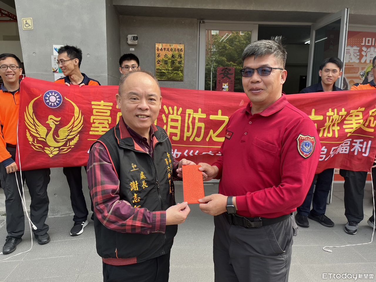 ▲台南市消防之友會第六辦事處處長謝志仁與第六救災救護大隊長邱淵明偕同多位副處長,7日至所屬消防分隊慰問。(圖/記者林東良翻攝,下同)