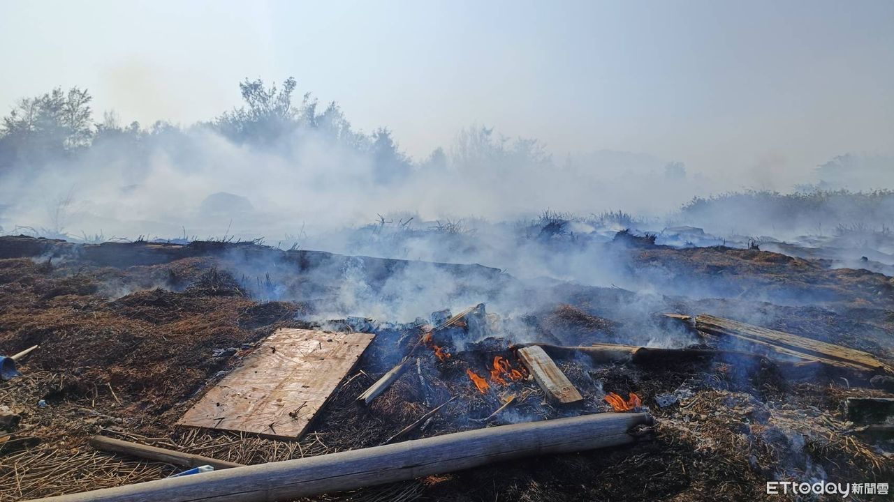 ▲▼現場大量海漂垃圾,助長火勢延燒。(圖/記者林名揚翻攝)