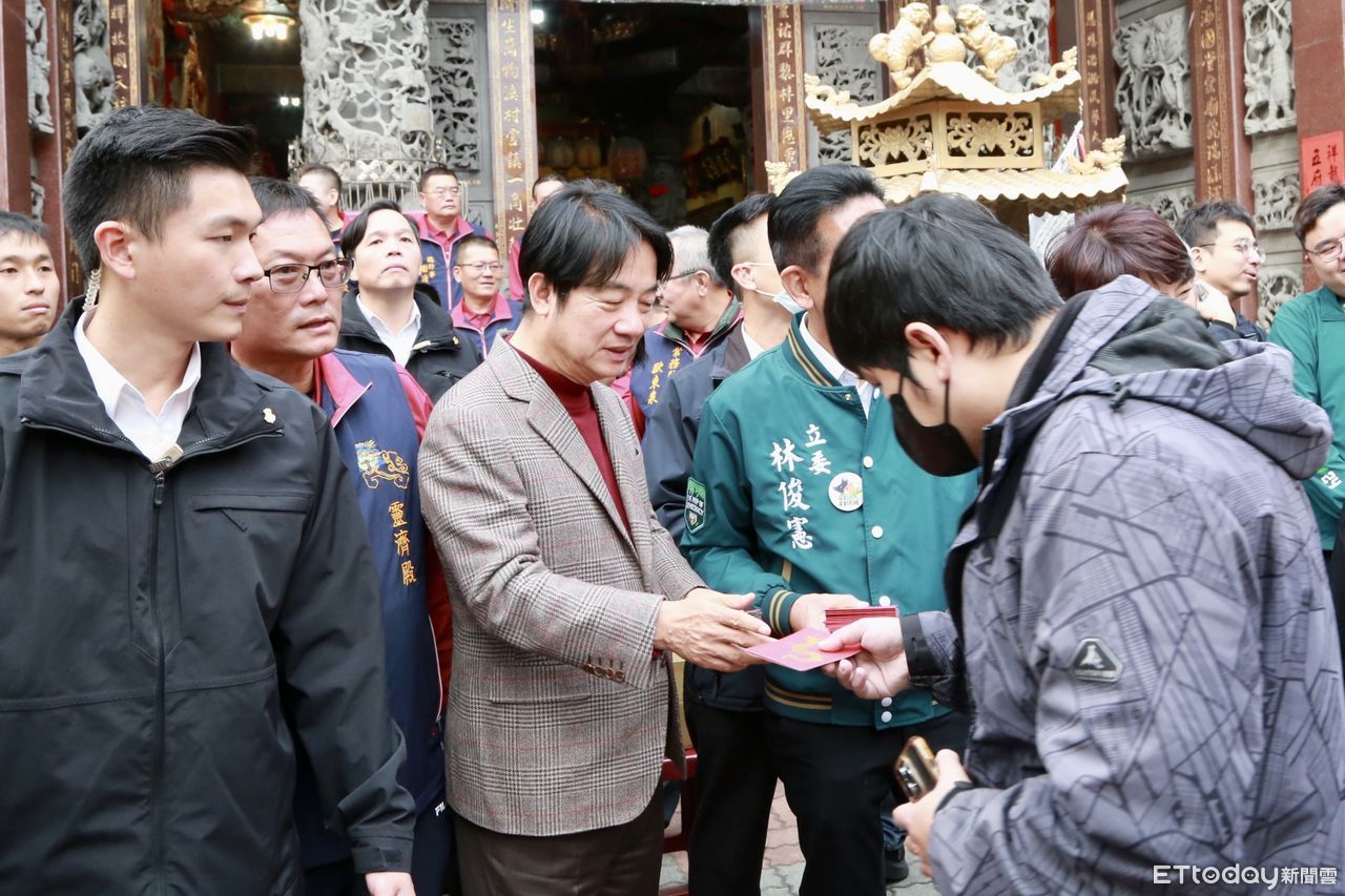 ▲副總統賴清德10日大年初一下午特別南下,在台南市長黃偉哲陪同下,前往安平開台天后宮、安平觀音亭、安平靈濟殿等廟宇祈福,並發紅包向民眾賀年。(圖/記者林東良翻攝,下同)