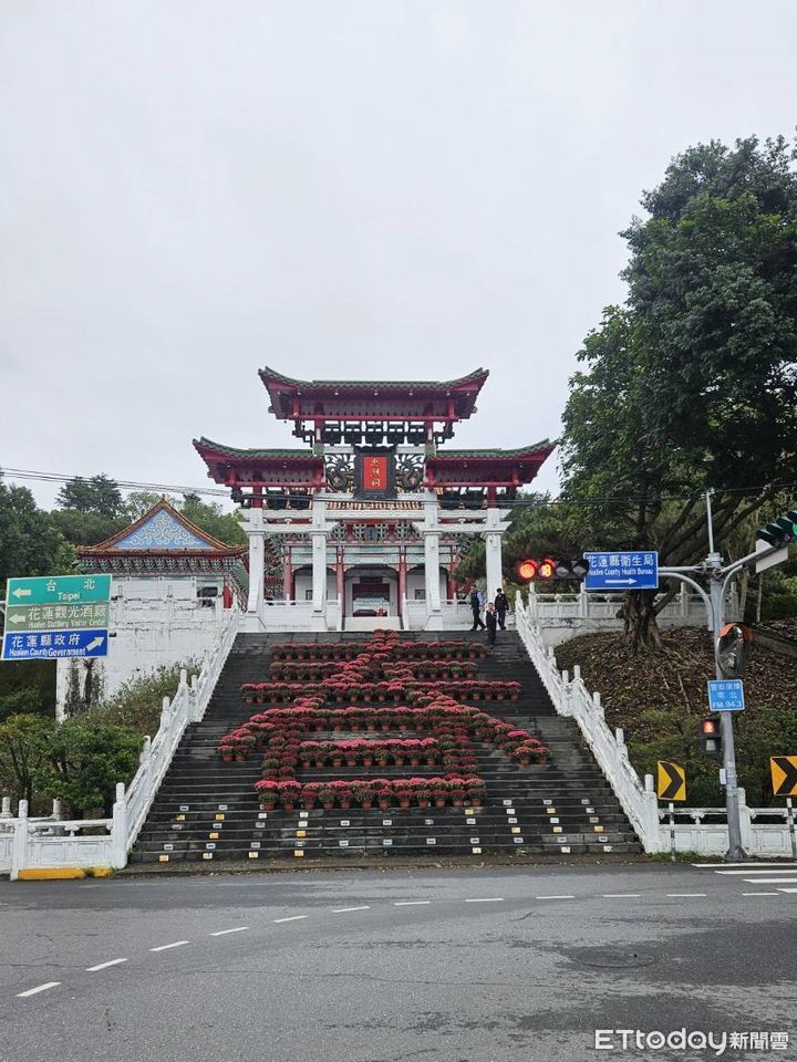 舊歲將盡,新年來臨,花蓮縣政府為迎接新春的到來,將忠烈祠周遭綠植進行修剪,美化環境,也特別購置年節花卉,排列成春字畫卷,展開在牌坊前的石階上,營造出滿滿的新春氛圍,生意盎然。