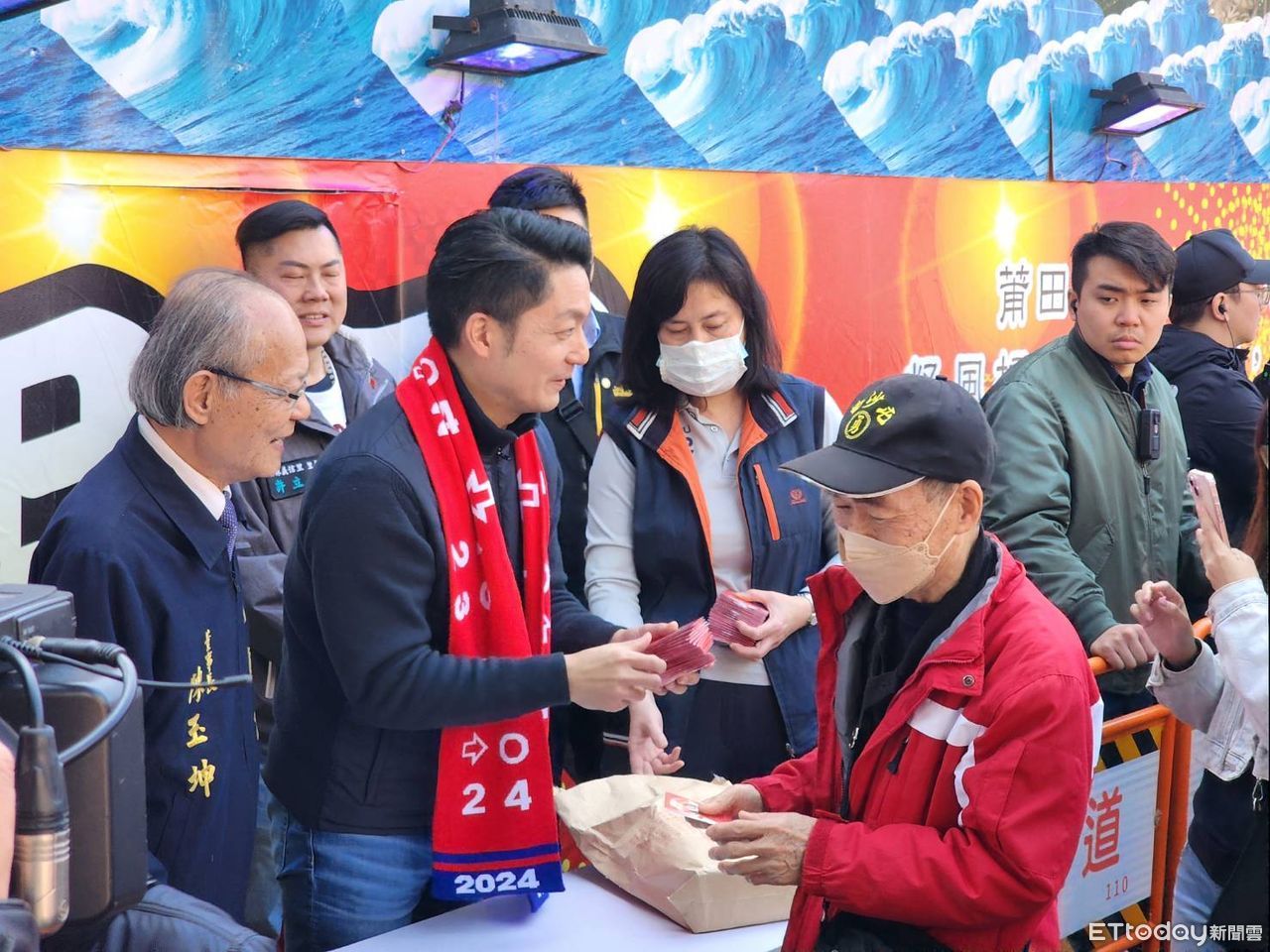 ▲台北市長蔣萬安關渡宮發錢母。(圖/記者陳家祥攝)