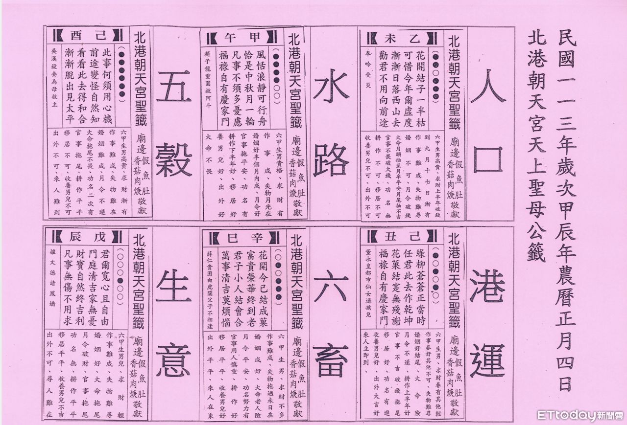 ▲雲林北港朝天宮大年初四抽出甲辰年公籤。(圖/記者蔡佩旻翻攝)