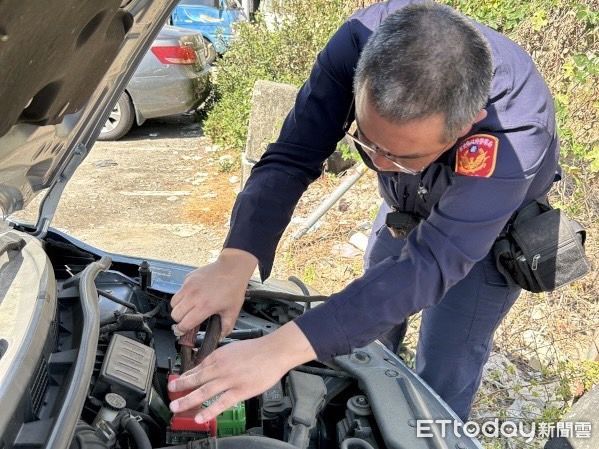 ▲里港警分局九如分駐所警員楚竣貴找來電霸順利發動汽車 。(圖/記者陳崑福翻攝)