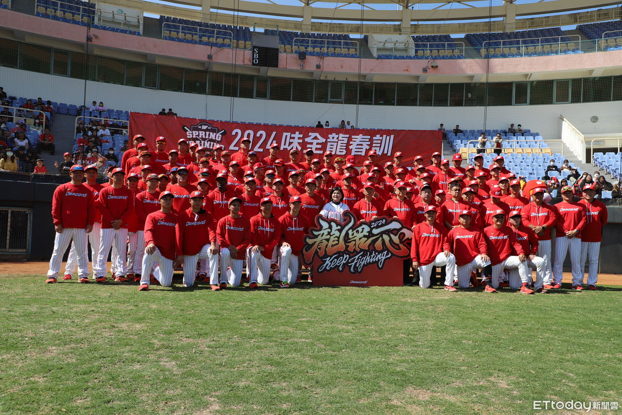 ▲味全龍今日在雲林斗六棒球場進行開訓典禮。(圖/記者蔡佩旻翻攝)
