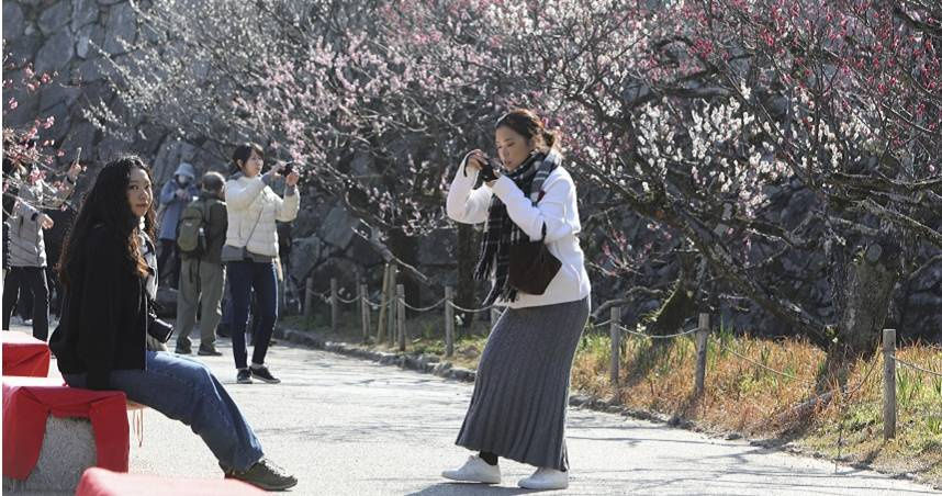 ▲原PO表示,台灣人一直吹捧日本旅遊勝國旅。圖為福岡梅花開。(圖/達志/美聯社,下同)