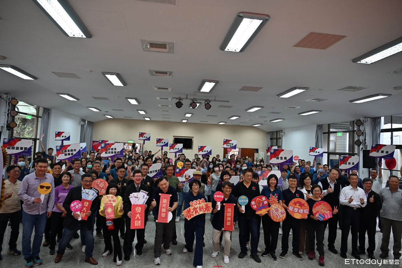 台東縣政府於16日年節過後開工第2天,在縣府大禮堂舉行113年台東縣新春團拜,邀集中央駐地機關代表及縣府同仁計約200人齊聚縣府大禮堂,互賀新春愉快、喜迎龍年到來。
