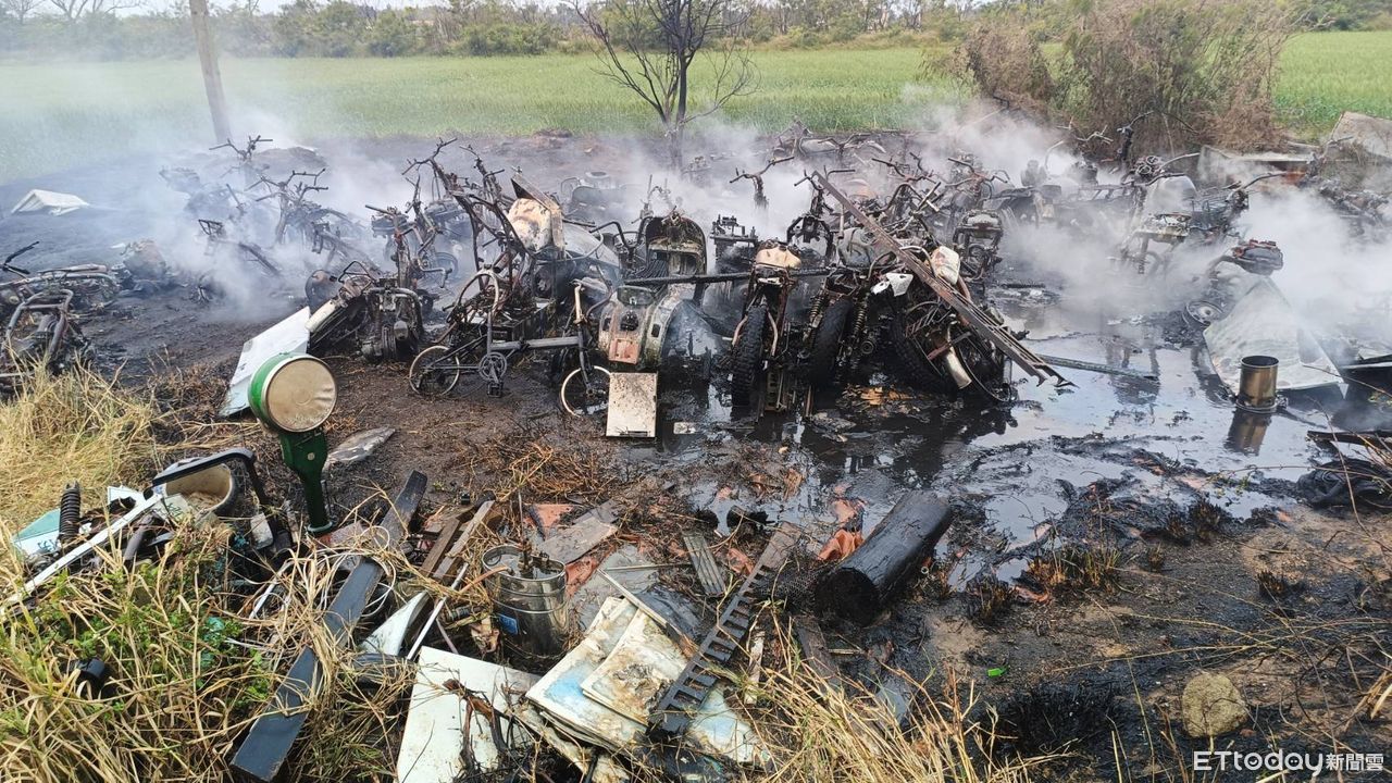 初步了解,機場場停放約30多台機車,是顏男花10多年所收藏的古董機車,如今卻全部付之一炬,損失20多萬元,也讓他欲哭無淚。