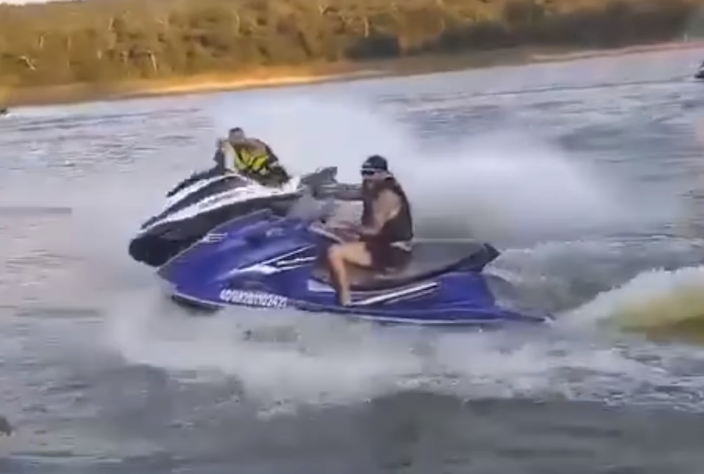 巴西聖保羅州的聖羅克市(São Roque)日前發生一起嚴重的水上摩托車事故,當地一名商人在玩水上摩托車時分心與岸上朋友交談,未注意到前方狀況,結果當場被另一人騎著水上摩托車甩尾撞擊,螺旋槳直接削過上半身,商人當場摔落並失去意識,目前仍在加護病房接受治療。