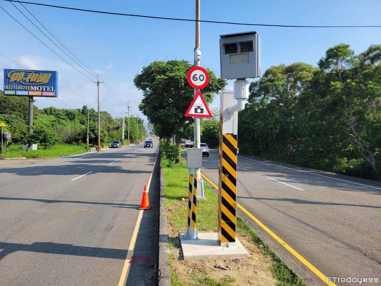 ▲苗栗縣竹南鎮公義路道路筆直,限時速60公里,車輛容易超速行駛,新設測速照相機,將於3月1日開始執法。(圖/苗栗縣警察局提供)