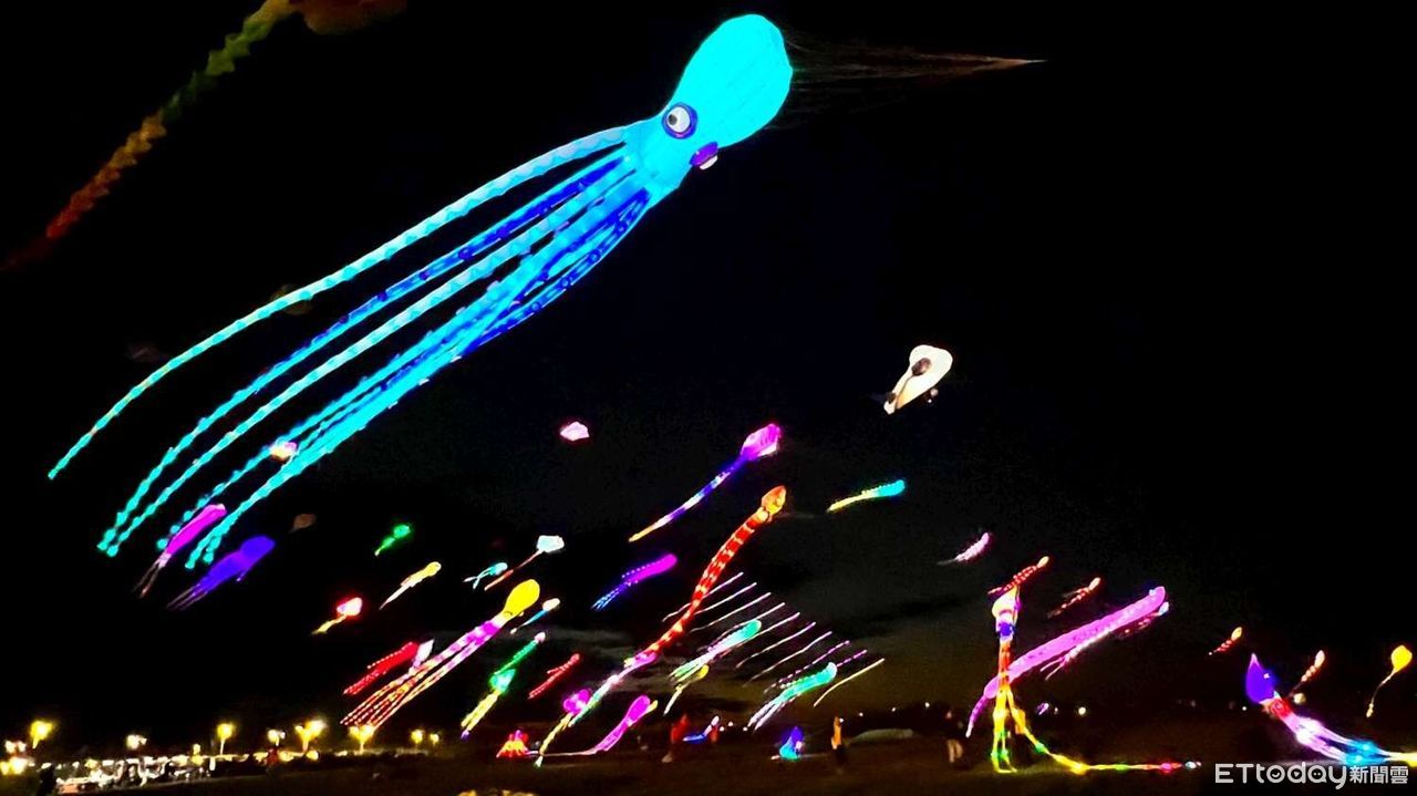 ▲▼2023風箏節以「風」、「海」、「科技」為主題,從海洋和漁港元素中汲取靈感,結合新竹獨有的強勁風勢與科技力,創造一個空中海洋世界。