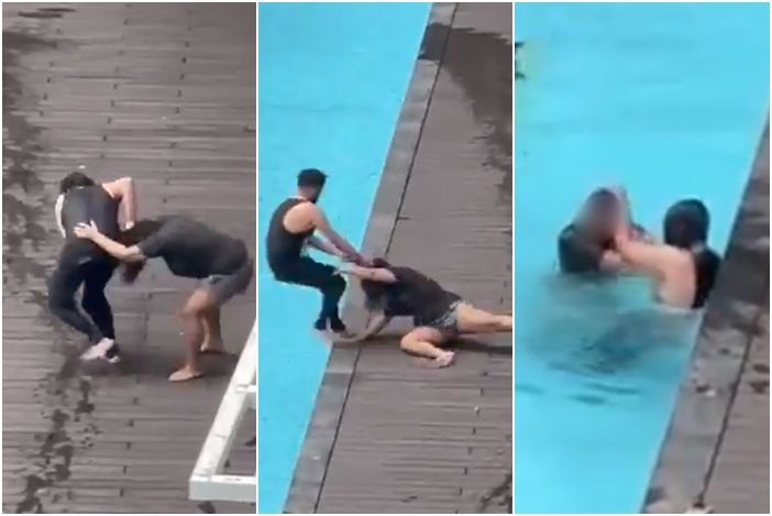 綜合星洲網、中國報等報導,這起事件發生在雙威鎮,依據目擊網友拍攝到的畫面,男子從泳池上岸後就和女子發生爭執,女子隨後走到泳池附近椅子坐下,男子跟在後方,結果突然之間,男子伸手猛力扯著女子頭髮,把她拖進泳池內。