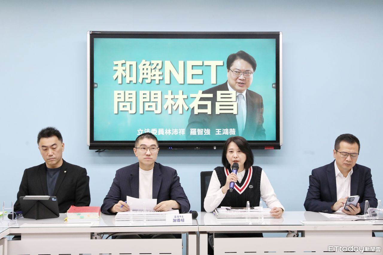 ▲立委林沛祥、羅智強、王鴻薇、及基隆市長謝國樑召開「和解NET 問問林右昌」記者會。(圖/記者屠惠剛攝)