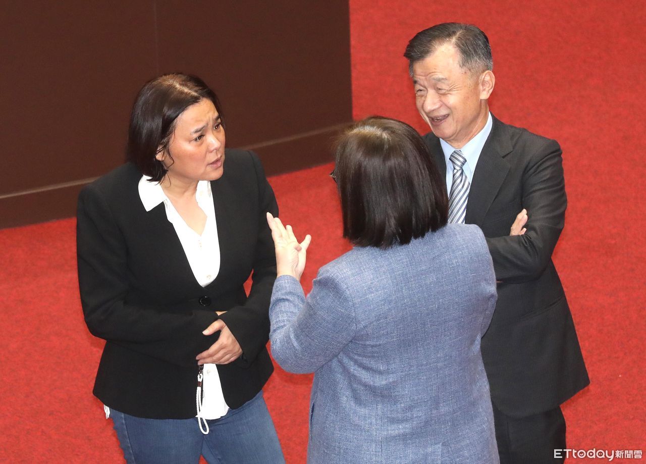 ▲海委會主委管碧玲和立委陳玉珍、陸委會主委邱太三溝通陸漁船越界問題。(圖/記者屠惠剛攝)