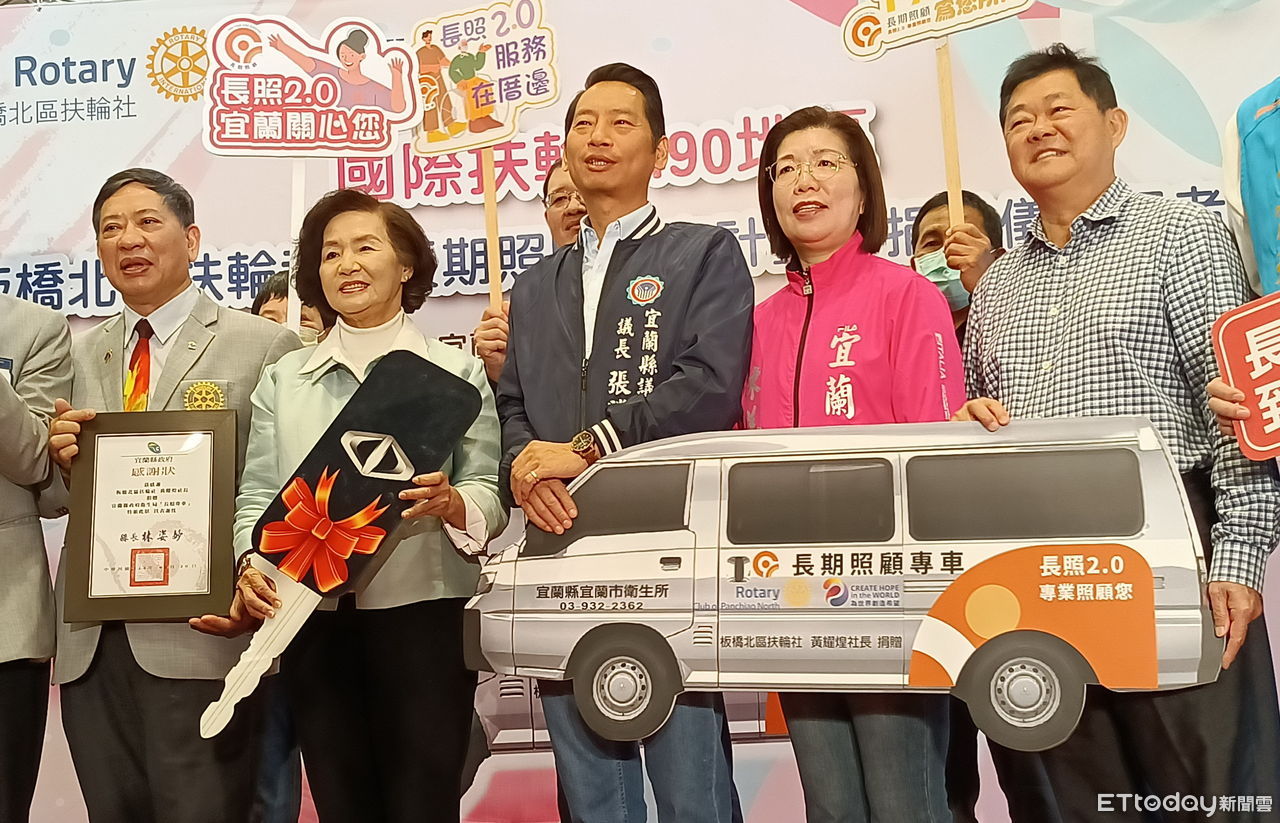 宜蘭縣宜蘭市65歲以上長者達全市的18.1%,為了讓宜蘭市失能長輩能多多走出家門參與社會活動,宜蘭子弟的板橋北區扶輪社社長黃耀煌慷慨解囊,捐贈宜蘭市衛生所1輛長期照顧專車。20日在宜縣政府大廳舉辦捐贈儀式,宜蘭縣長林姿妙代表接受表示,期待因為有安全舒適的長照專車,可以協助更多失能的長者們克服外出障礙,不再只是留在家中,而是由安全舒適的長照服務專車接送至社區巷弄長照站,藉由據點提供的預防及延緩失能服務,落實長者在地老化、健康老化、活躍老化的理想。