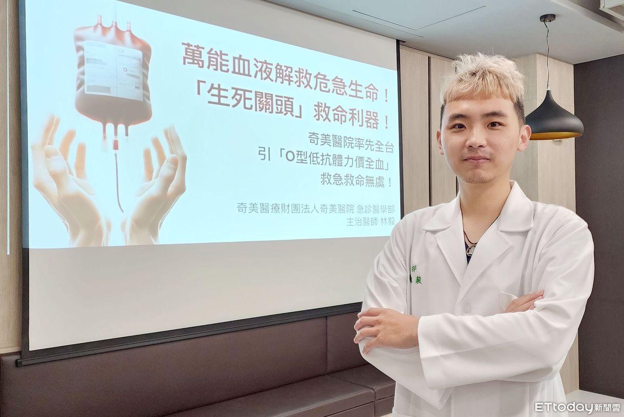 ▲林毅醫師指出,透過引入O型低抗體力價全血,奇美醫院展現在急救醫療領域的領導地位,並致力於提升醫療服務質量,為病人提供更安全、更有效的救治方案。(圖/記者林東良翻攝,下同)