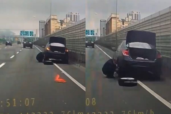 從行車紀錄器影片當中可以看見,駱男當時駕車行經台65線新莊段1.9公里處時,有輛轎車停放在車道最外側,而駱男則是維持同樣的時速駛過,就這樣撞上了正在換備胎的陳男。