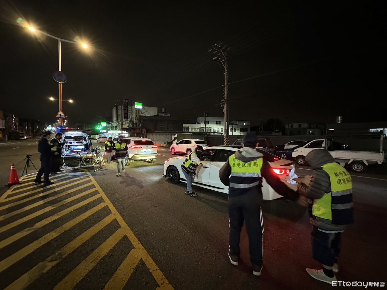 ▲竹縣警局強化深夜稽查勤務,針對車聚熱點進行攔查。(圖/記者陳凱力翻攝,下同)
