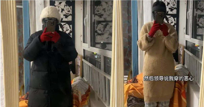 女子倒也非常做自己,她不認為自己穿得噁心,反而覺得很安心,因為公司搬到新的環境,周圍都是荒地,電路也不穩定,還經常會斷電,她的工作是攝影,還需要經常外出,所以只能以保暖為主。