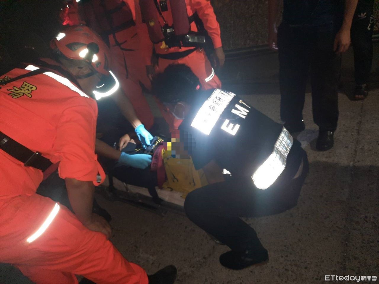 消防人員到達現場後發現民眾掉落約3米深且卡在消波塊裡,立即翻越堤岸下降至消波塊確認患者情形,初步評估患者生命徵象正常,但因摔落下來時撞及身體導致頭部疼痛、胸部肋骨疑似骨折,消防人員給予頸圈限制頸部,並以長背板固定患者。小隊長張恁銍隨即指揮現場消防及海巡人員、協力將患者沿著崎嶇消波塊推移,患者向上抬至堤防平台後由救護人員搬運至救護車上進行緊急救護後送醫治療。