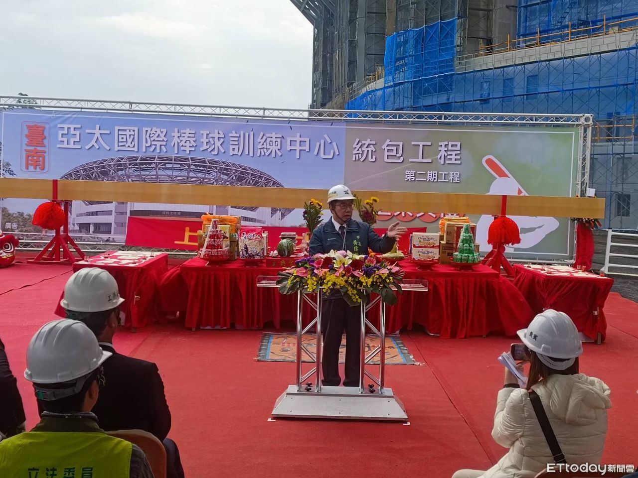 ▲亞太國際棒球訓練中心成棒主球場工程,1日由市長黃偉哲主持上梁典禮,祈求工程順利。(圖/記者林東良翻攝,下同)