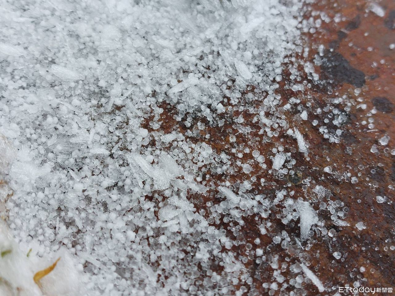 ▲玉山氣象站在今天早上降下冰珠。(圖/氣象署)