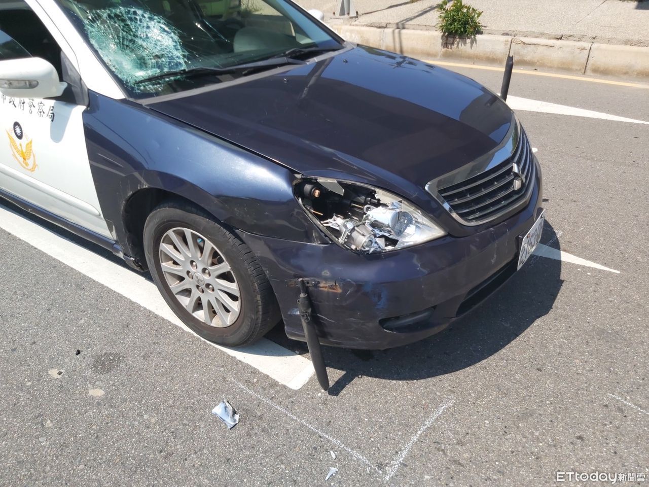 ▼警車車頭毀損,可見碰撞力道很大。(資料照/記者黃宥寧翻攝)
