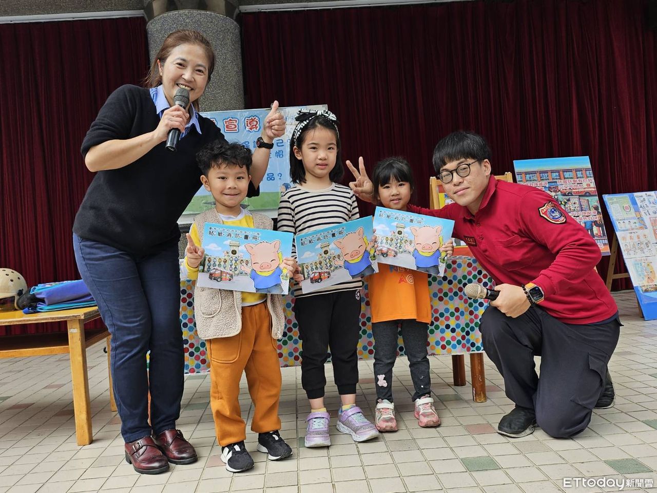 ▲台南市消防局七大隊德興消防分隊5日上午前往艾的佳幼兒園,進行一場意義重大的消防宣導活動,向師生宣傳教育幼童正確的居家防火觀念。(圖/記者林東良翻攝,下同)
