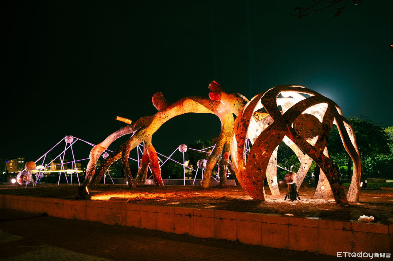 ▲台灣燈會即將於3月9日劃下完美句點,其中被藝術家林鴻文稱為是「可存放三千年」的作品《在歷史紋繪中聽見》,由宇建形象有限公司以耐候鋼材料製作設計等4件作品,將繼續保存在原地。(圖/記者林東良翻攝,下同)